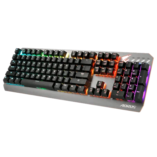 El Aorus K7 RGB es un dispositivo para juegos avanzado con teclas mecánicas Cherry MX de calidad superior, una iluminación RGB Fusion 2.0 sincronizada, pies de goma antideslizantes ajustables y capacidad anti-ghosting de rango completo. Controla la retroiluminación y los medios a tu gusto mientras juegas.