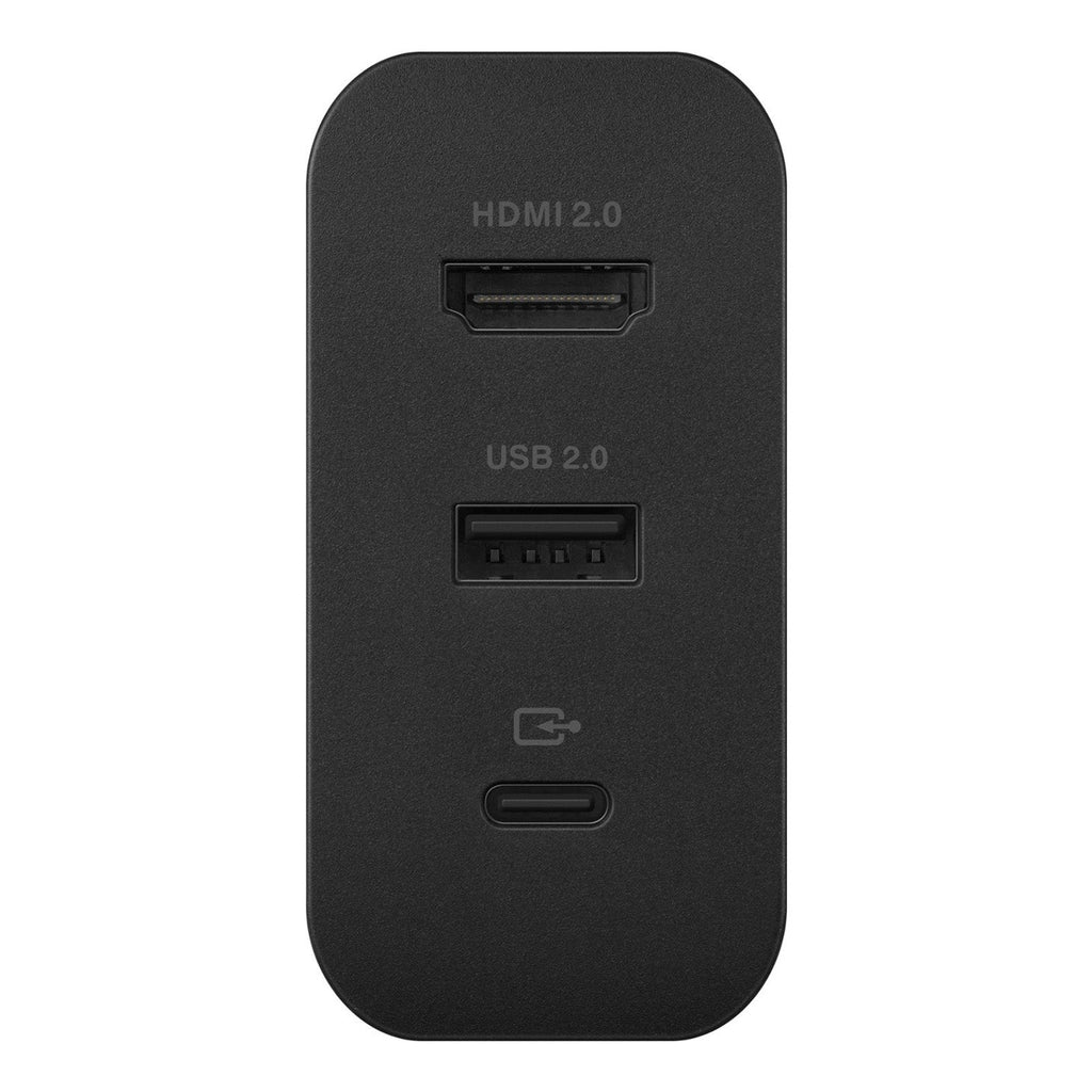 Dado que el Gaming Charge Dock también es un concentrador USB, también puedes usar el puerto HDMI para conectarte a un televisor o monitor externo y el puerto USB-A para conectar tu teclado y mouse, teniendo un entorno de trabajo cómodo incluso cuando no estás conectado a la corriente alterna. El puerto USB-A también admite transferencias de datos USB 2.0 cuando necesitas conectarte a una unidad flash.