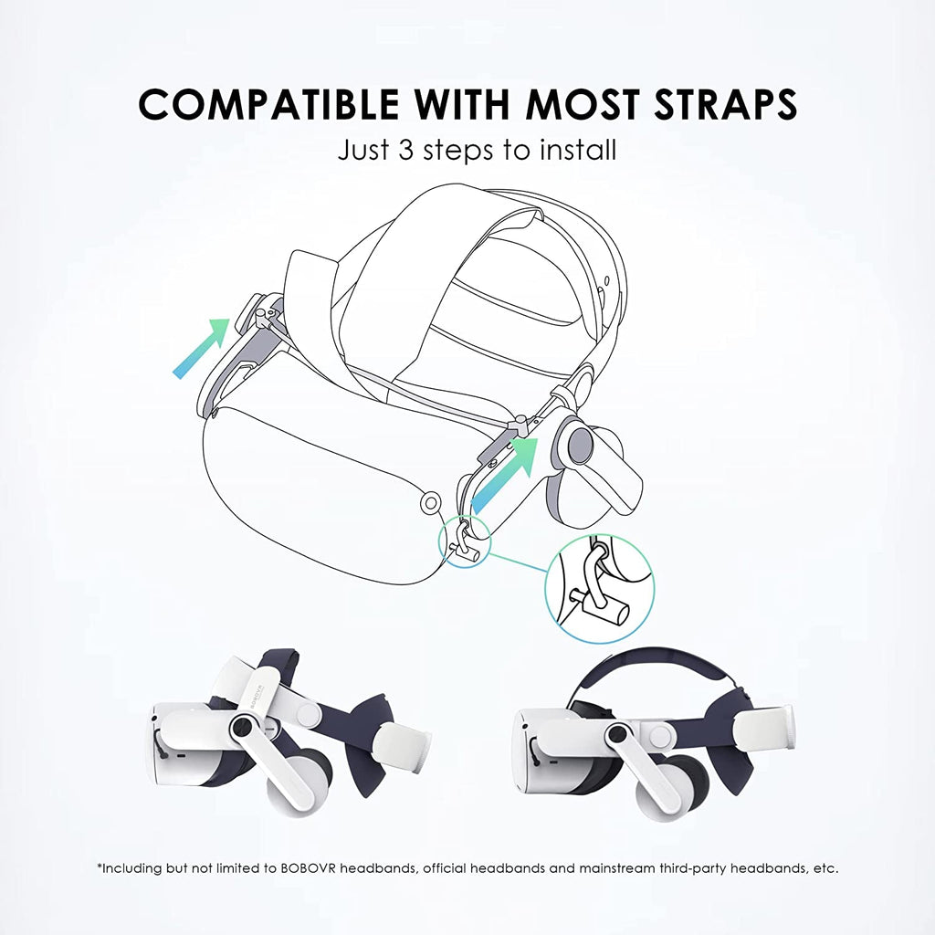 - [Compatible con una variedad de correas Quest2] adopta un diseño de instalación de deslizamiento lateral, que se puede instalar directamente en la mayoría de las correas Quest2 Elite y Halo en el mercado. lo que puede mejorar significativamente la calidad del sonido de los equipos de RV y mejorar su experiencia de inmersión en RV.