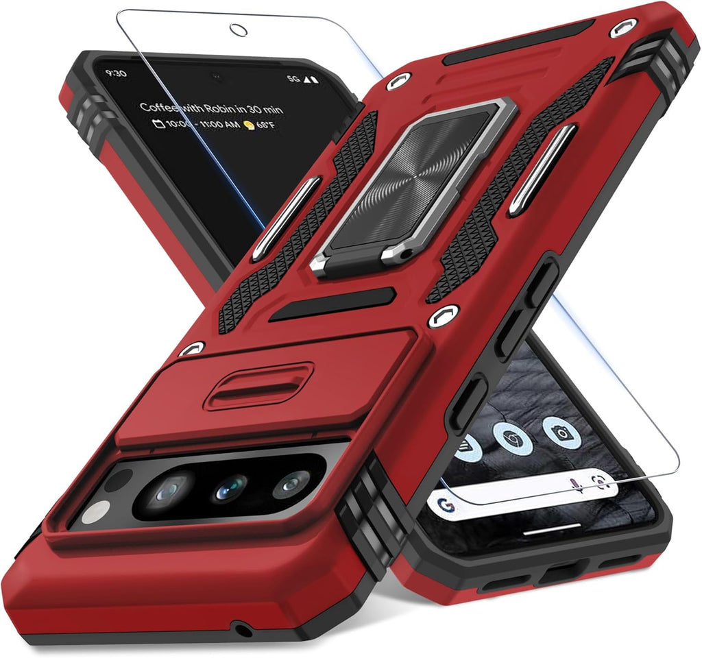 • Protección de cámara y pantalla: La cubierta deslizante de la cámara protege la lente de la cámara de la funda Google Pixel 10/10 Pro de arañazos y rozaduras. Los bordes de pantalla sutilmente mejorados de 1,8 mm y el protector de pantalla de vidrio brindan a la pantalla una protección adicional y completa. Garantiza que cada aspecto de tu teléfono esté protegido con un soporte de anillo magnético único.