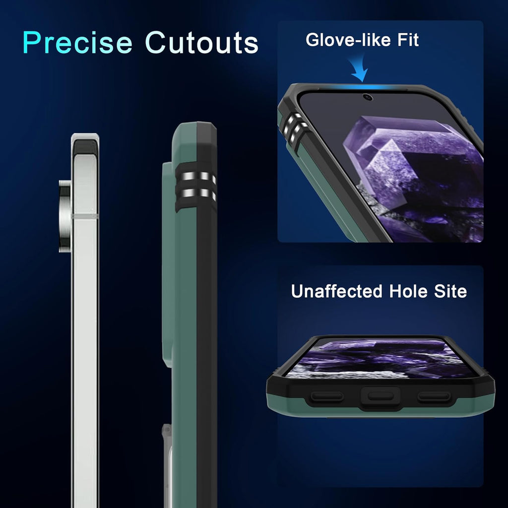 • Funda Armor con cubierta deslizante para cámara, especialmente diseñada para Google Pixel 10/Pixel 10 Pro de 6.3 pulgadas (lanzado en 2025). ¡No compatible con otros dispositivos! Su corte preciso se adapta a cada botón, cámara, altavoces y puertos, facilitando el acceso a todos los botones y puertos. Aviso: Debido al anillo metálico en la parte trasera, esta funda no es compatible con la función de carga inalámbrica.