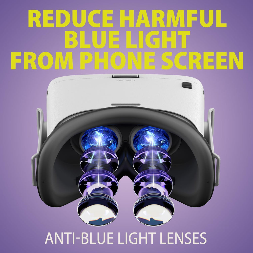 Gafas de realidad virtual V5 para teléfono con controlador, lentes HD con protección contra la luz azul, campo de visión de 110°, compatibles con iPhone 16/15/14/13/12/11, Samsung y Android - Blanco