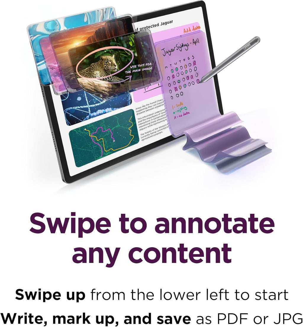 El **Lenovo Tab Pen Plus** es perfecto para anotar materiales de clase y hacer capturas de pantalla de video en un solo paso. Crea notas de desplazamiento largo y guárdalas como PDF o JPG.