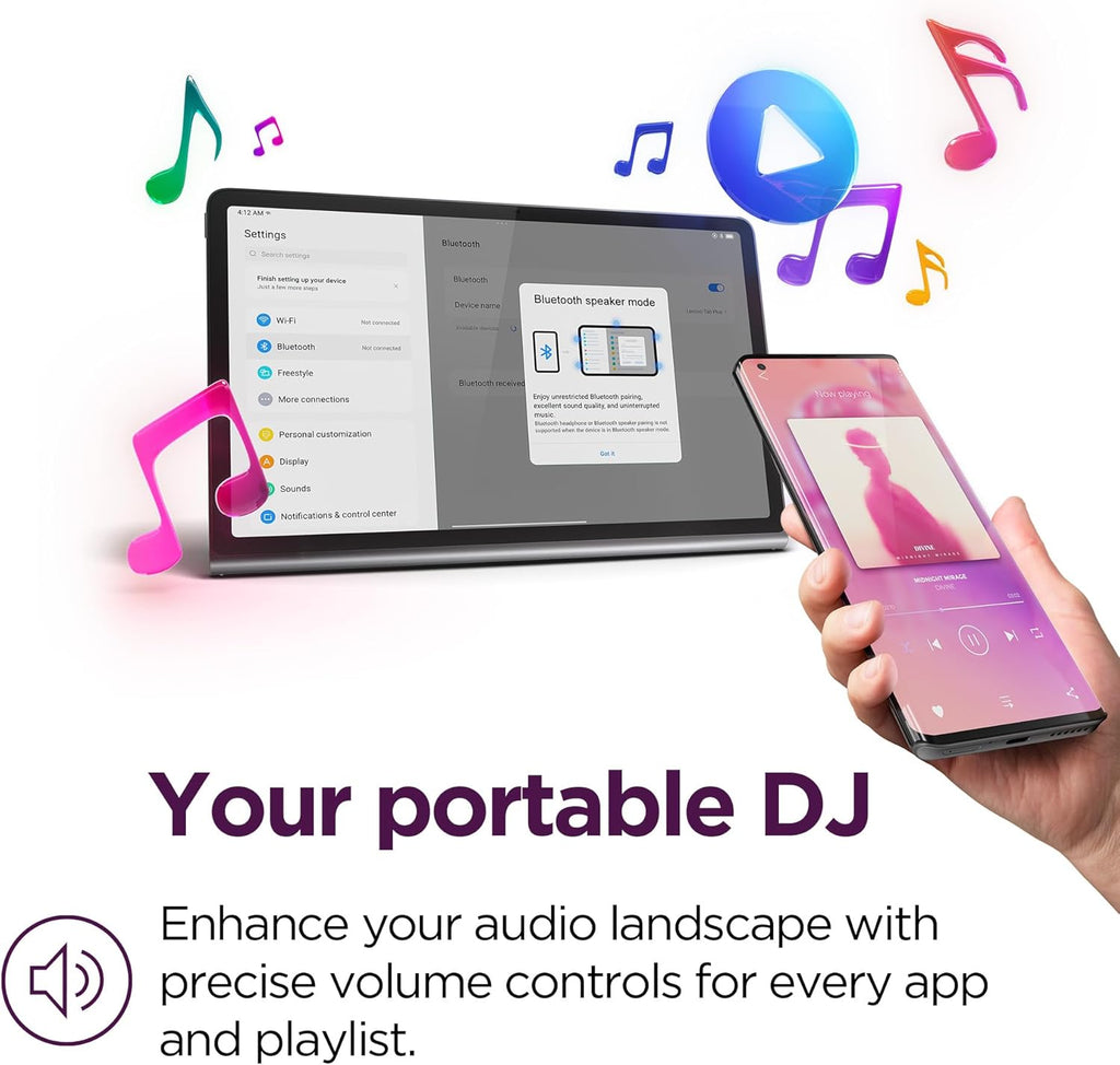 La Lenovo Tab Plus es más que una tablet; es una experiencia audiovisual de vanguardia que te ofrece sonido de calidad de cine y una versatilidad inigualable.