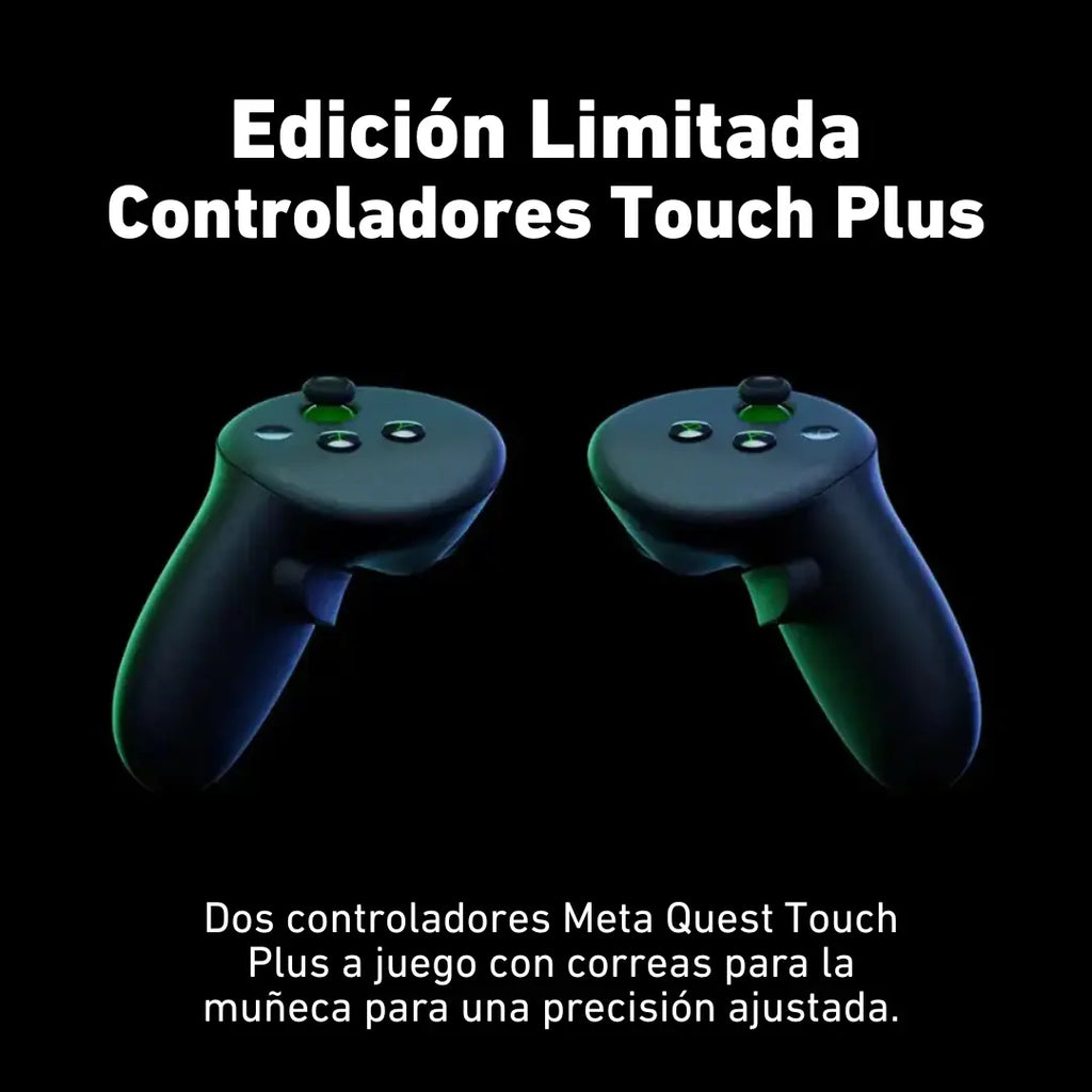 Diseño de edición limitada: El dúo más poderoso de los videojuegos se ha unido para crear un Meta Quest como ningún otro, con un diseño en color negro carbón y detalles en verde "Velocity Green".