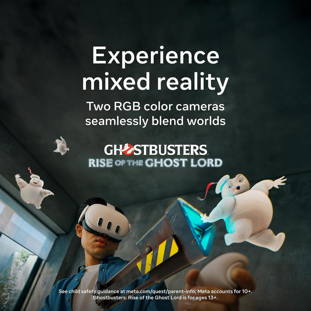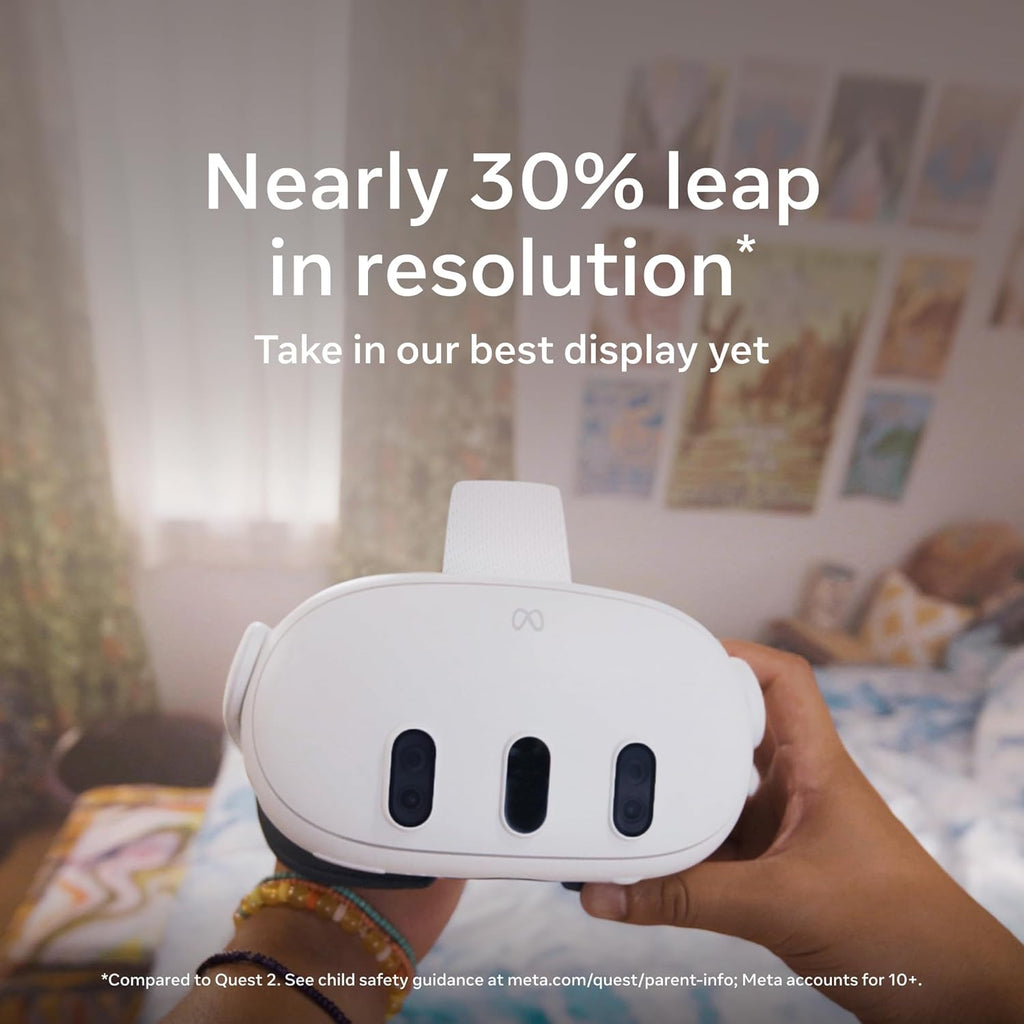 Disfruta de la experiencia definitiva de realidad mixta. Con Meta Quest 3, puedes ver series en pantallas gigantes vibrantes que puedes ajustar al tamaño perfecto, mientras ves el mundo que te rodea. Sumérgete en una inmersión total, donde te sentirás como si estuvieras dentro de tus juegos favoritos, gracias a la brillante resolución 4K y al rico audio espacial. Con Infinite Display, disfruta del campo de visión más amplio de cualquier Quest para disfrutar de las experiencias más inmersivas hasta la fecha. Su diseño delgado e inalámbrico te ofrece comodidad premium para moverte con libertad en entrenamientos, juegos complejos y entornos dinámicos. Experimenta la potencia y la comodidad premium de Meta Quest 3.
