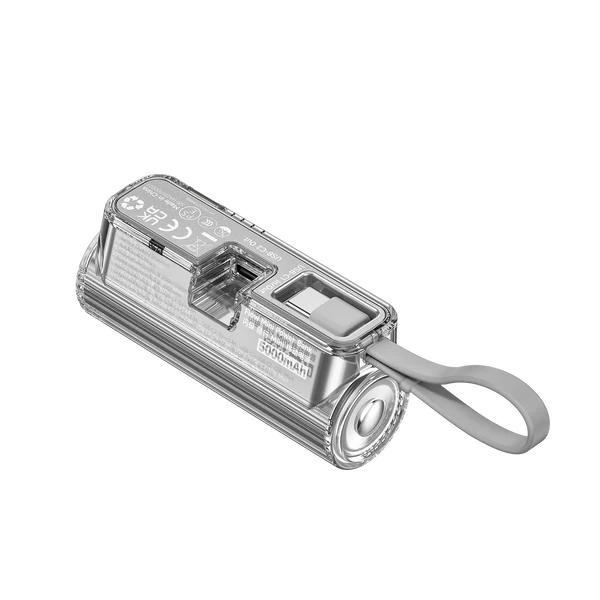 Capacidad de 5000 mAh, lo que generalmente permite cargar la mayoría de los teléfonos inteligentes al menos una vez, dependiendo del tamaño de la batería del dispositivo.
