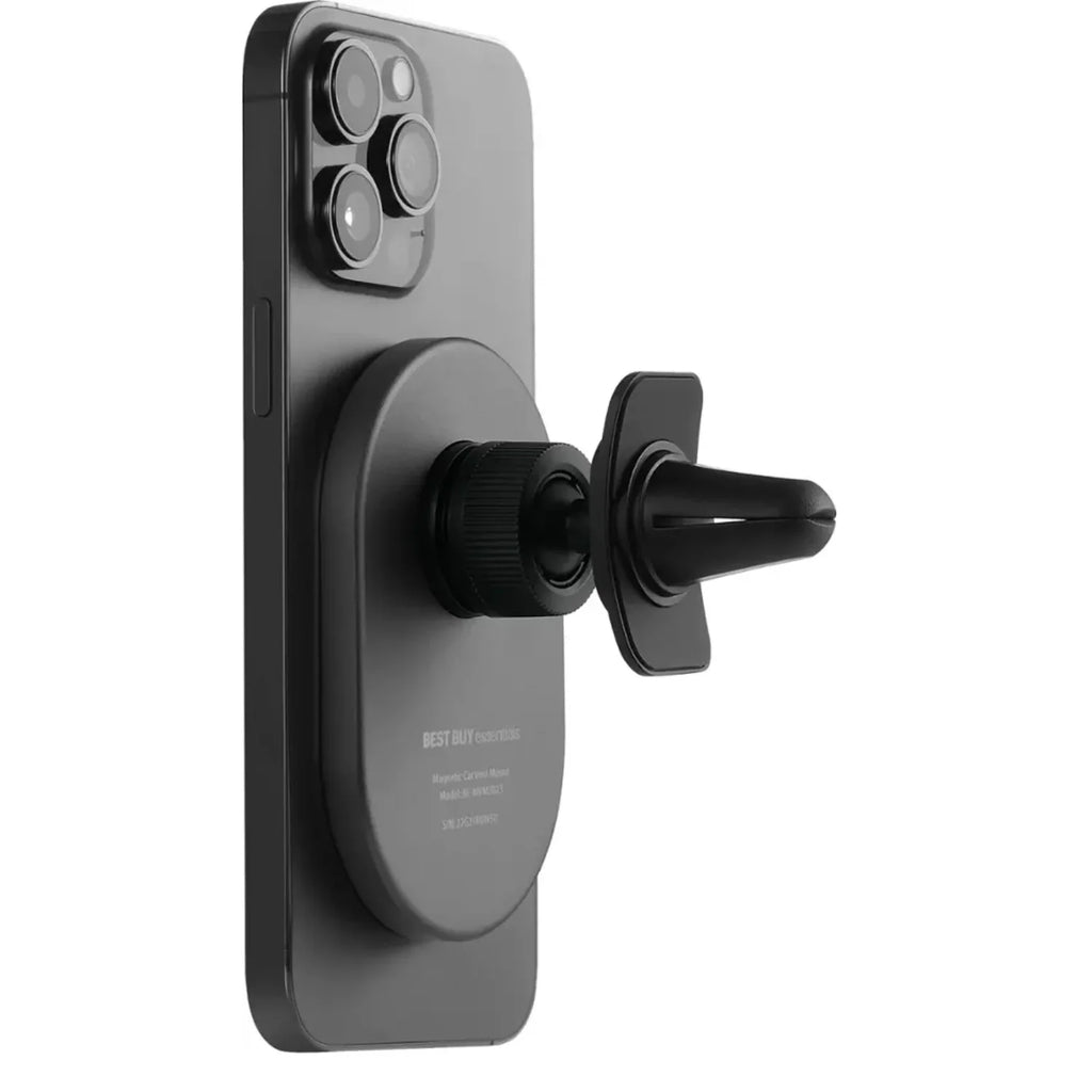 Disfruta de una forma segura, práctica y elegante de montar tu iPhone en el auto. El Soporte Magnético para Rejilla de Ventilación de Best Buy essentials está diseñado especialmente para dispositivos compatibles con MagSafe, como los iPhone 15, 14, 13 y 12. Solo debes acoplarlo a la rejilla de ventilación y colocar tu iPhone para que se fije magnéticamente al instante. Su estructura de aluminio y policarbonato garantiza durabilidad, mientras que su diseño ajustable te permite visualizar tu pantalla en posición vertical u horizontal.