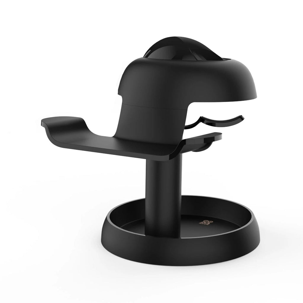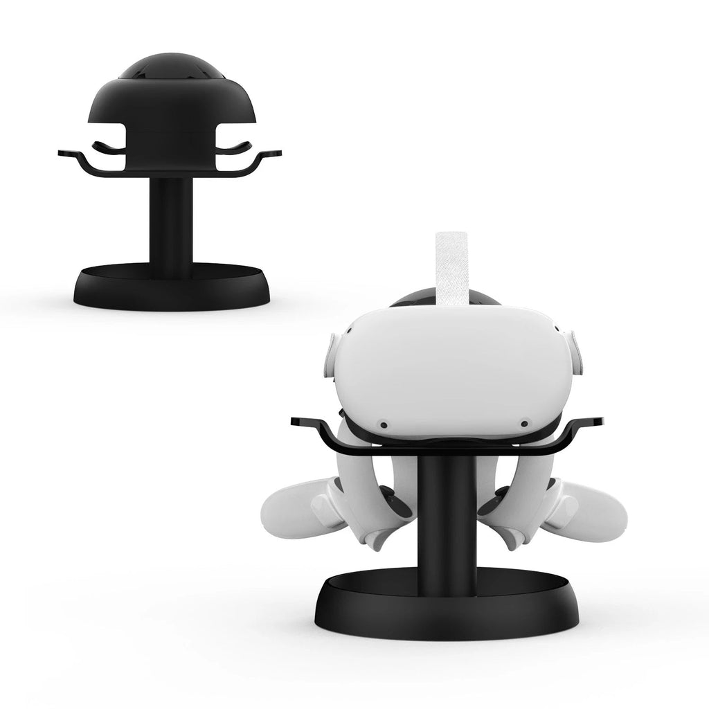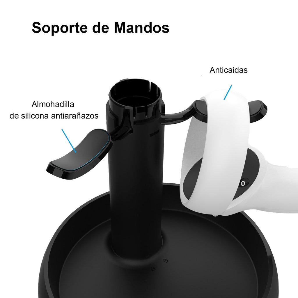 El soporte está construido con materiales de alta calidad que garantizan su durabilidad y resistencia. Su diseño de base redonda proporciona una estabilidad excepcional, asegurando que las gafas de realidad virtual se mantengan en su lugar de manera segura.