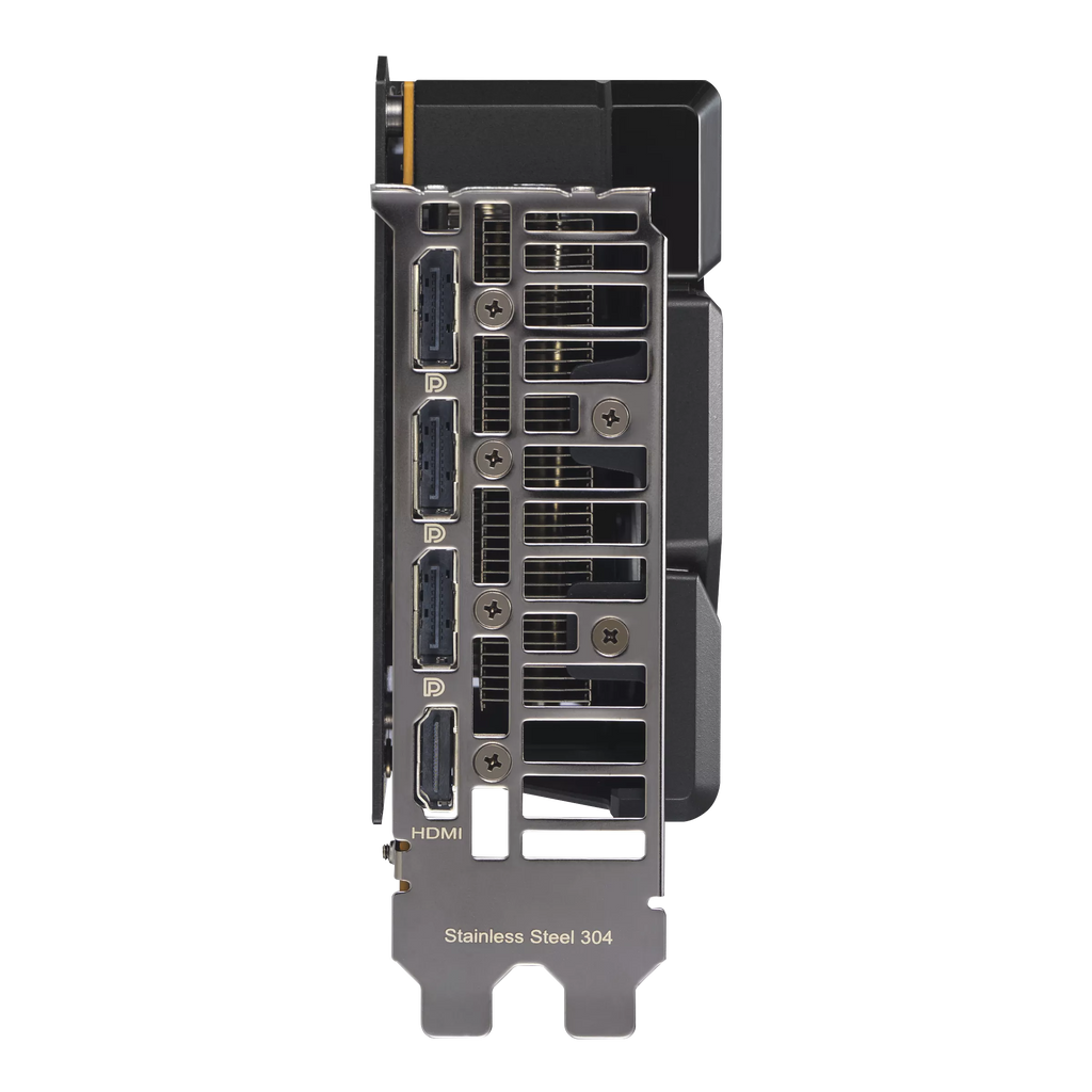 La tarjeta cuenta con 1 puerto HDMI 2.1b nativo y 3 puertos DisplayPort 2.1b nativos, soportando hasta 4 pantallas simultáneas y una resolución digital máxima de 7680 x 4320.